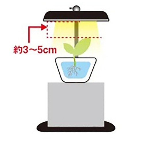 LEDの光に近づけて毎日16時間以上照射するとお部屋で育てることができます。