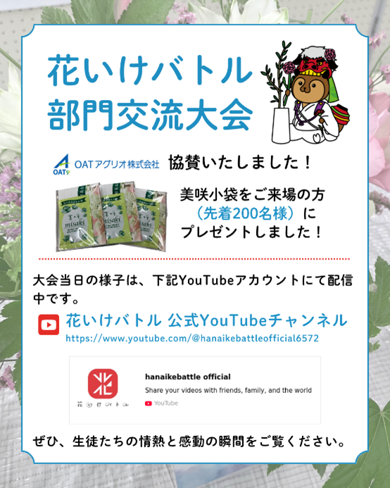 大会の様子はYouTubeチャンネル(@hanaikebattleofficial6572)にて配信中ですので、ぜひチェックしてみてくださいね📺
