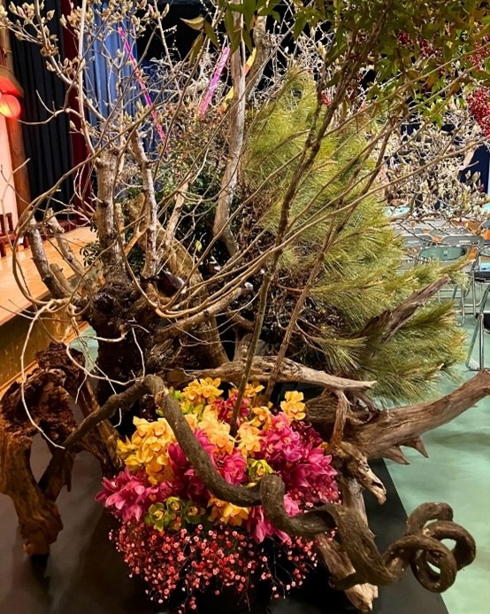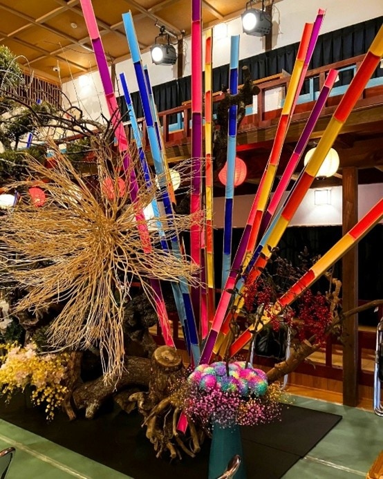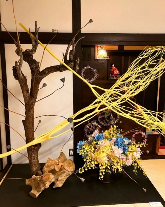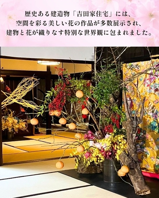 歴史ある建造物「吉田家住宅」には、空間を彩る美しい花の作品が数多く展示され、建物と花が織りなす特別な世界観に包まれました。
